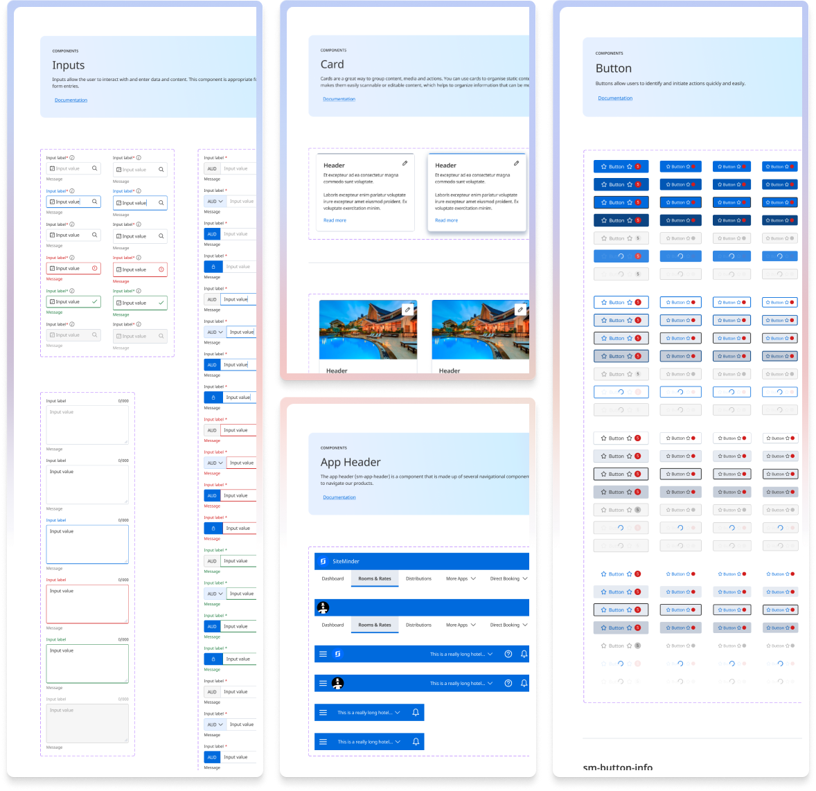 SiteMinder decided that owning their own design system and component library, which would be maintained in-house, was the best solution to tackle this. Also the bespoke nature of the Hotel Channel Management industry also requires that some niche patterns and components be used that may not necessarily be used in a Design System or component library that is for more general use.