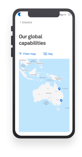 For the Telstra Global site, one item that came out of the initial research done for the Telstra Enterprise redesign rollout was the customer’s need for a map that would showcase how capable the Telstra Network is on a global scale.